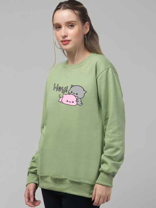 Green self design sweatshirt has a round neck, na pockets, long sleeves, closure, ribbed hem
