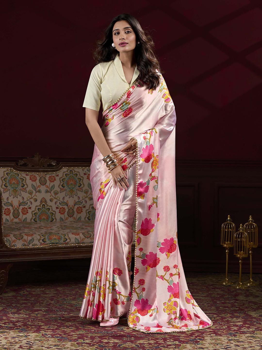 Saree fabric:Satin Blouse fabric:Silk blend Hand wash