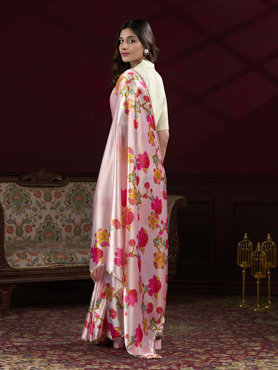 Saree fabric:Satin Blouse fabric:Silk blend Hand wash